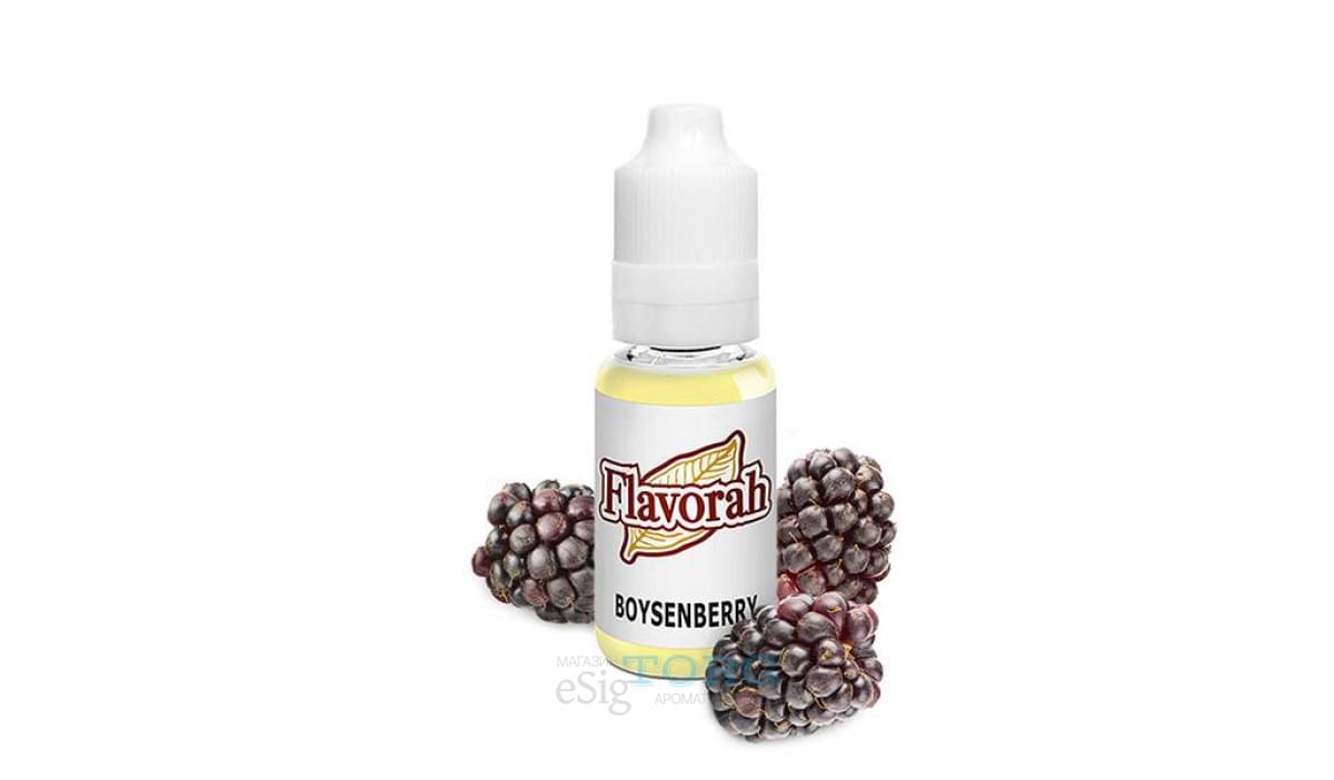 Boysenberry Flavorah — ароматизатор со вкусом малины и ежевики. Данный концентрат имитирует аромат бойзеновой ягоды — гибрида малины, ежевики и логановой ягоды. Boysenberry FLV больше всего напоминает ягодное варенье, с терпкими и сиропными нотками. Продукт отличается высокой концентрацией, поэтому при употреблении рекомендуется соблюдать следующие пропорции: 2-2,9% (соло-замесы) и 0,1-2,5% (в рецептах).